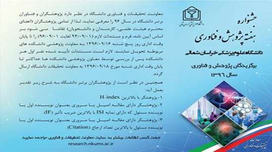 برگزاري جشنواره تجليل از پژوهشگران برتر به مناسبت هفته پژوهش