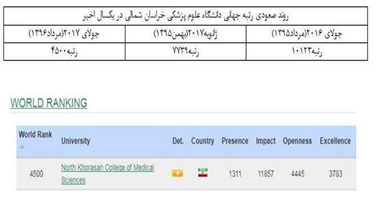 دانشگاه علوم پزشکی خراسان شمالی در تازه ترین رتبه بندی جهانی وبومتریکس صعود چشمگیری داشته است .