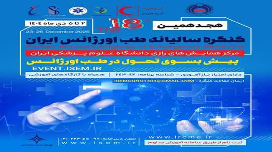 برگزاری هجدهمین کنگره سالیانه طب اورژانس ایران و همزمان  چهارمین کنگره تازه های تروما و کنگره پرستاری اورژانس در عصر تحول دیجیتال در تاریخ 2 تا 5 دی ماه 1404 در سالن همایشهای بین المللی رازی در دانشگاه پزشکی ایران برگزار میشود