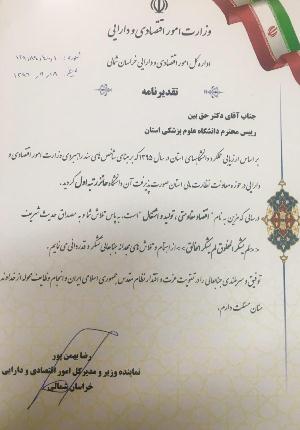 کسب رتبه نخست برمبناي شاخص هاي سند راهبردي نظارت مالي در بين دانشگاه هاي استان توسط دانشگاه علوم پزشکی خراسان شمالی