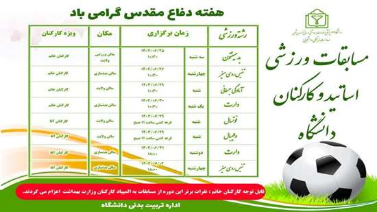 مسابقات ورزشی اساتید و کارکنان دانشگاه به مناسبت گرامیداشت هفته دفاع مقدس گروه خبری : اخبار امور بانوان,اخبار ایثارگران کد خبر : 57275 کپی لینک کلمات کلیدی دفاع_مقدسمسابقات_ورزشیکارکنان_دانشگاه_علوم_پزشکی_خراسان_شمالی