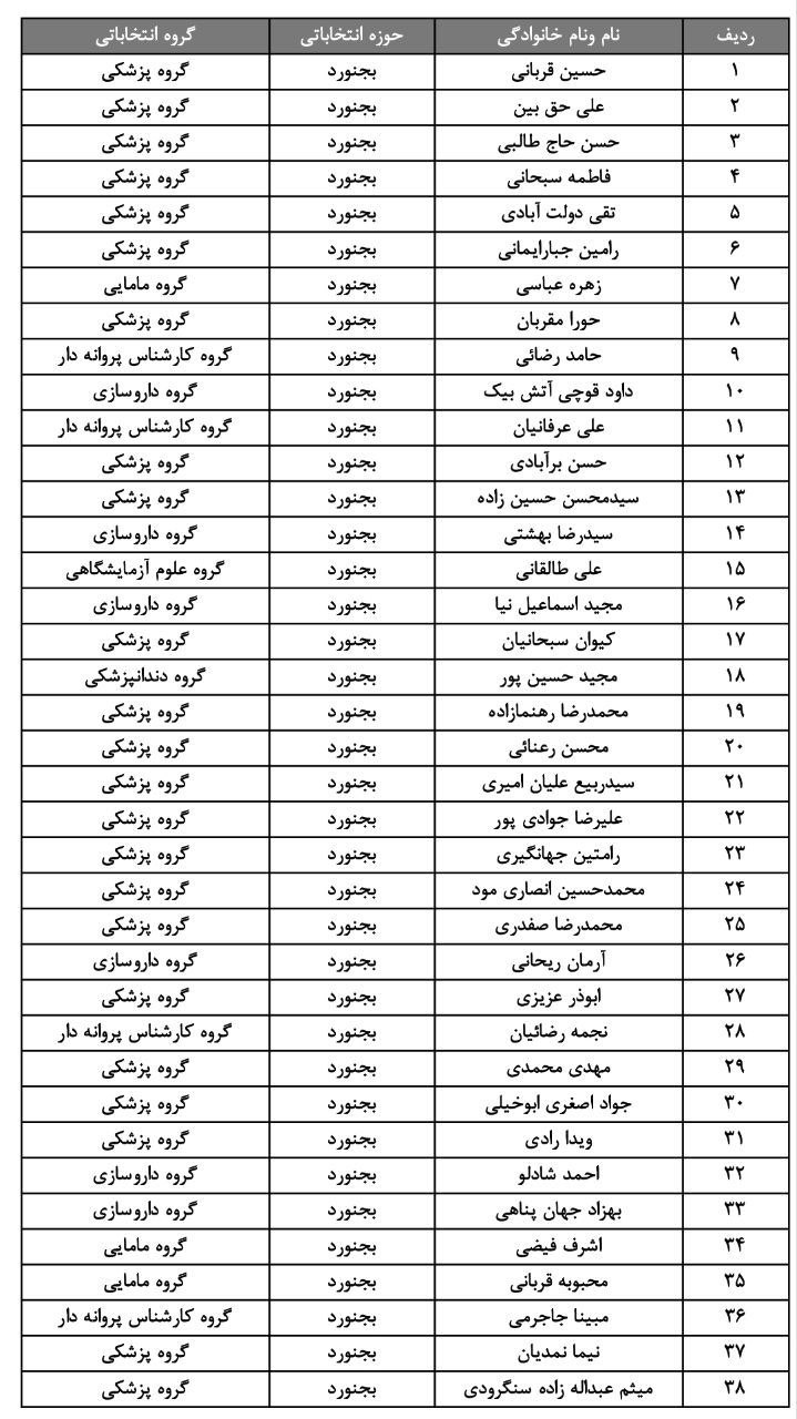 اسامی کاندیداهای تایید شده انتخابات نظام پزشکی بجنورد