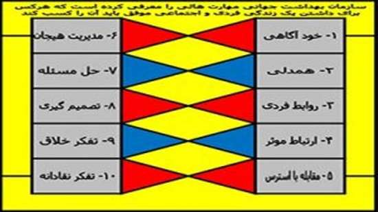 « زهرا یوسف نژاد » با اشاره به این که سازمان بهداشت جهانی مهارت های دهگانه ای را معرفی کرده است که هر کس برای داشتن زندگی فردی و اجتماعی موفق کسب کند ،تاکید کرد :این مهارت ها شامل مهارت خودآگاهی، همدلی، روابط بین فردی، ارتباط موثر، مقابله با استرس، مدیریت هیجان، حل مسئله، تصمیم گیری، تفکر خلاق و مهارت تفکر نقادانه می باشد .