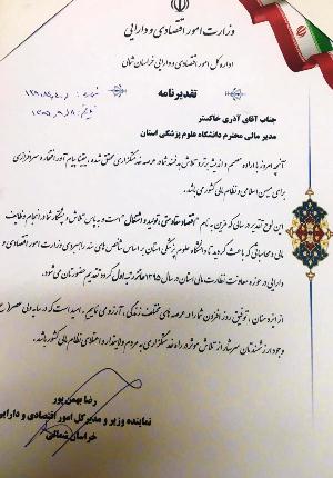 تقدیر نماينده وزير و مدیرکل امور اقتصادي و دارايي خراسان شمالي از مدیر مالی دانشگاه برای سومین سال پیاپی