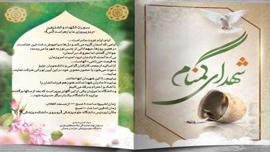 دعوت از کلیه همکاران و خانواده های گرامی دانشگاه علوم پزشکی شمالی در مراسم تجلیل و تدفین شهید گمنام گروه خبری : اخبار امور بانوان,اخبار ایثارگران کد خبر : 58779 کپی لینک کلمات کلیدی دعوتنامهدانشگاه_علوم_پزشکی_خراسان_شمالیمشاور_امور_بانوان_علوم_پزشکی__بجنورد