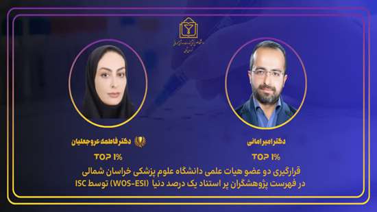 لازم به ذکرست که دو عضو هیئت علمی دانشگاه علوم پزشکی خراسان شمالی در لیست پژوهشگران پر استناد یک درصد دنیا (WOS-ESI) توسط ISC در سال ۱۴۰۴ قرار گرفته‌اند: