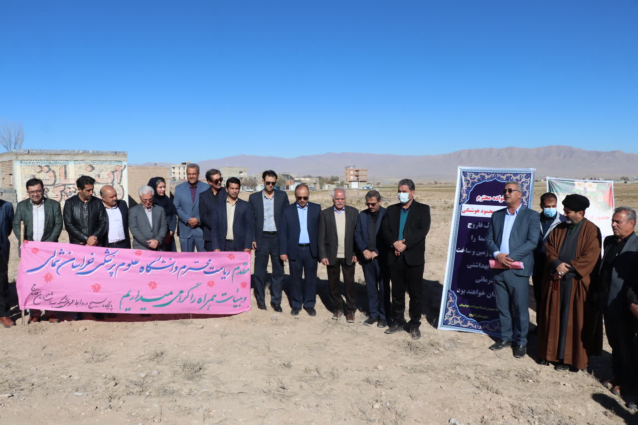 در پایان این نشست، با حضور دکتر هاشمی رئیس دانشگاه علوم پزشکی استان، علوی مقدم معاون هماهنگی امور عمرانی استاندار، حسینی فرماندار فاروج و جمعی از مسئولان شهرستان فاروج، از زمین اهدایی مرحوم هوشنگی در محل ورودی شهر فاروج از سمت قوچان بازدید به عمل آمد و از خانواده آن مرحوم قدردانی شد.